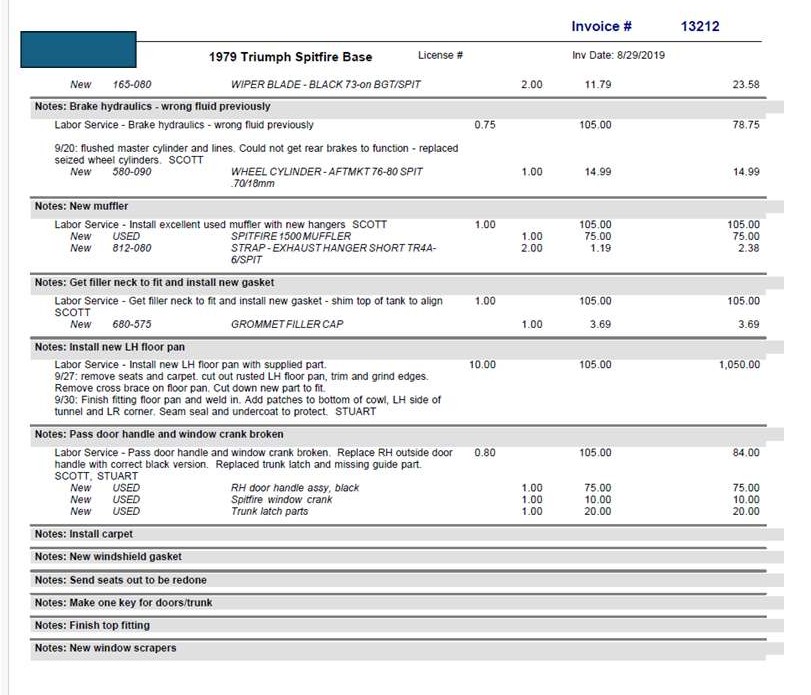 the following work: Paint, bodywork, top, interior, seats & carpet.